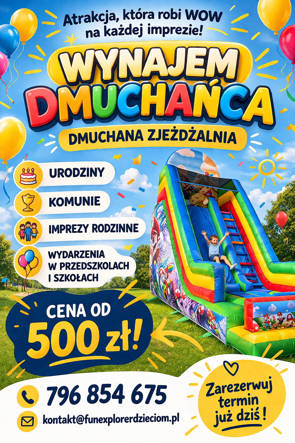 Szukasz atrakcji, która urozmaici urodziny, komunię lub wydarzenie dla dzieci? Dmuchana zjeżdżalnia to sprawdzone rozwiązanie, które zapewnia aktywną i bezpieczną zabawę przez wiele godzin.